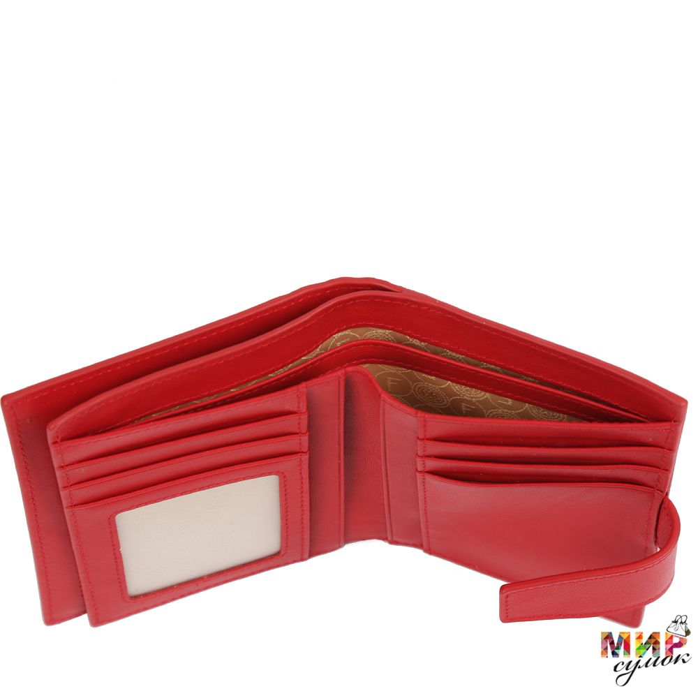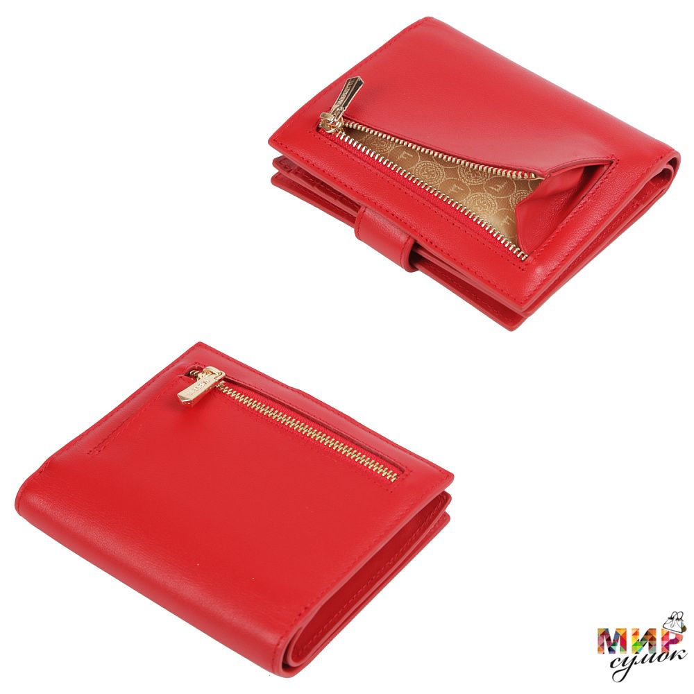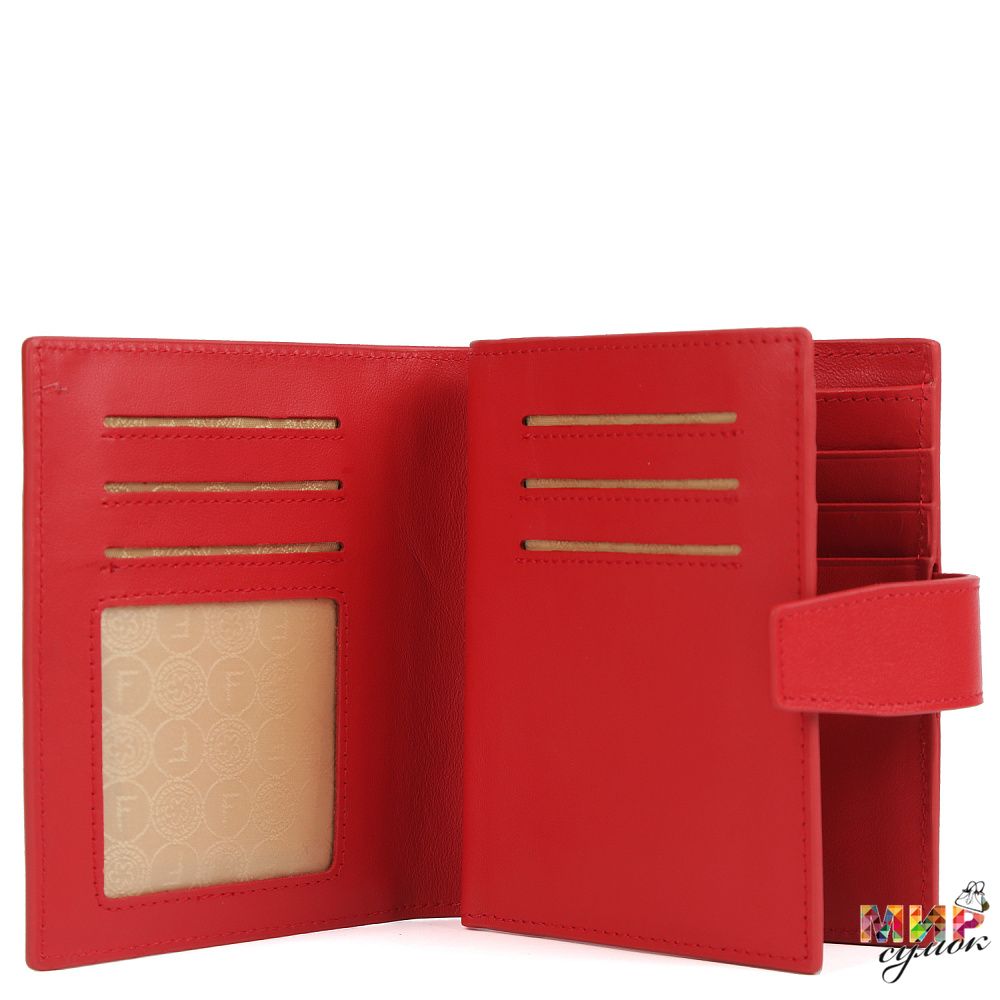 Складной женский кошелек FABRETTI в насыщенном красном оттенке выполнен из натуральной гладкой кожи.