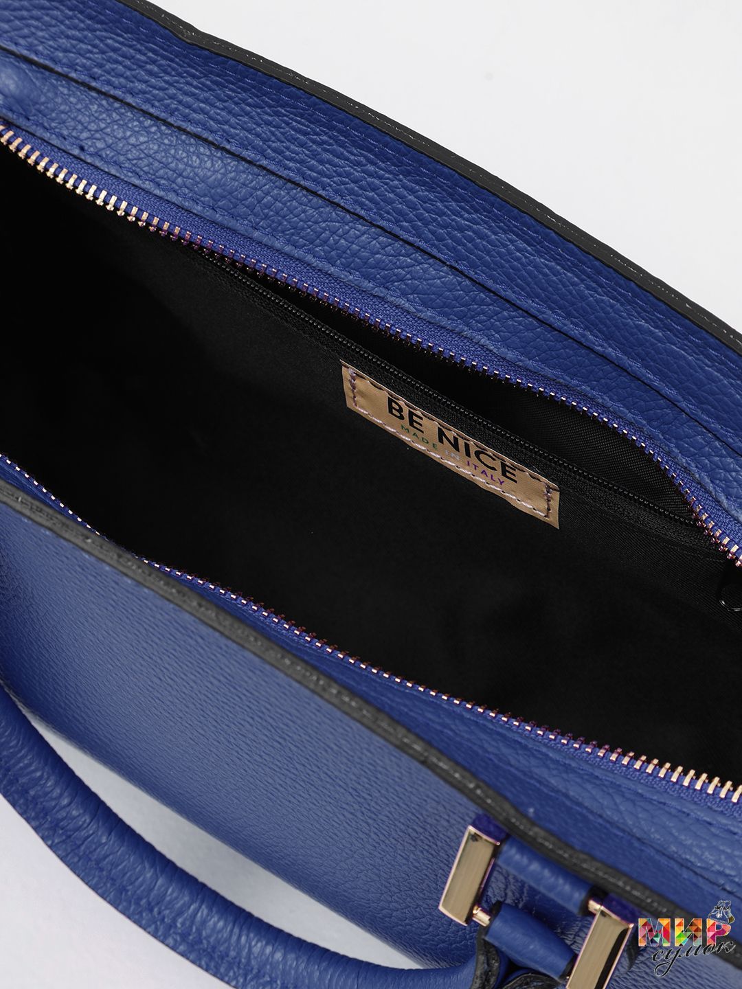Длина сумочки BE NICE (БИ НАЙС) - 30 см, ширина по дну - 7 см, высота - 15,5 см, общая высота с ручками - 25 см. Сумочка выполнена из натуральной кожи, закрывается на молнию. Внутри сбоку карман на молнии для мелочей. Сумочка носится на сгибе руки или в руке. Прилагается длинный кожаный ремешок, максимальная длина которого 125 см. Натуральная кожа. Производство Италия.