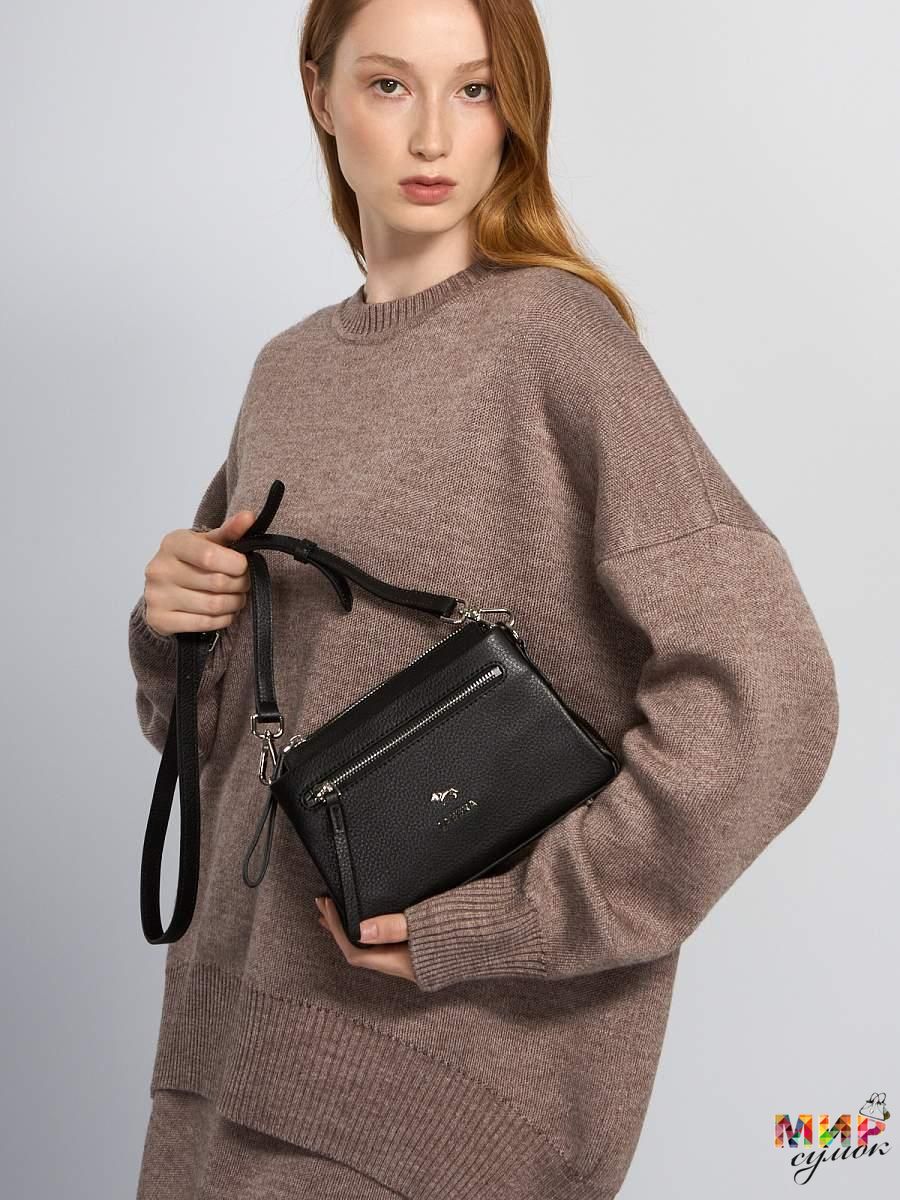 Женская сумка торговой марки Labbra из натуральной кожи. Модель застегивается на молнию. Содержит внутри один отдел, в котором имеются открытый карман и карман на молнии, по бокам имеются два отделения. На передней стенке есть карман на молнии. Максимальная длина съемного регулируемого плечевого ремня из натуральной кожи – 110 см, ширина – 1,5 см. Модель имеет ножки на дне. Не вмещает формат А4.