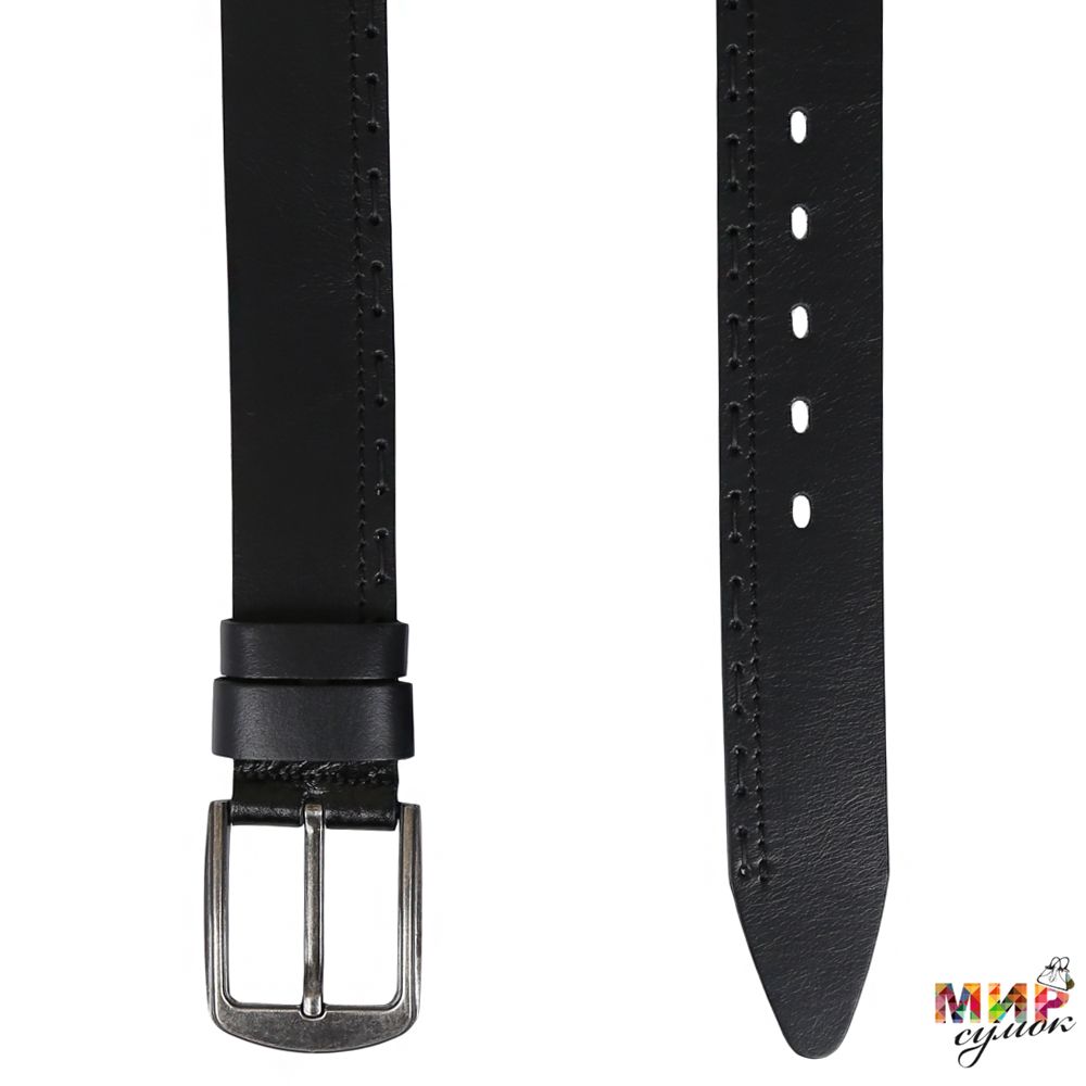 Черный джинсовый ремень для мужчин, выполнен из толстой натуральной кожи, высокого качества. Пряжка со скругленными краями, и декоративная отделочная строчка, придают изделию стильный вид. Широкие кожаные шлевки, фиксируют ремень. Незаменимый аксессуар современного мужчины.
