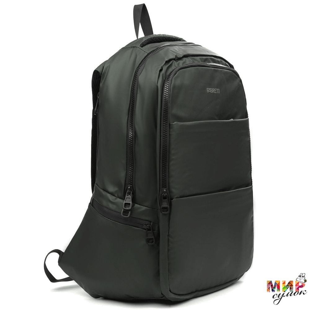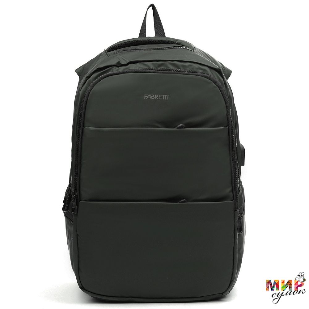 Вместительный текстильный рюкзак FABRETTI в цвете хаки выполнен из высокотехнологичного влагостойкого нейлона и оснащен USB-кабелем и USB-портом. Основное отделение закрывается на молнию с 2 бегунками. Внутри расположен usb-кабель и отделение с хлястиком на липучке, куда поместится планшет или электронная книга. Дополнительное отделение закрывается на полукруглую молнию. Внутри 2 открытых боковых кармана и органайзер для ручек. На лицевой стороне есть 2 кармана на молнии. Также имеются два боковых кармана быстрого доступа на влагостойкой молнии и потайной вертикальный карман на спинке. Сверху изделия – удобная текстильная ручка. На спинке есть мягкая вставка, которая обеспечивает циркуляцию воздуха для максимального комфорта и удобства. Лямки рюкзака широкие и мягкие, что позволит носить его, не перегружая плечи и спину. Рюкзак прекрасно подойдёт для прогулок по городу, велосипедных поездок или путешествий и поможет обеспечить бесперебойную работу необходимых гаджетов.