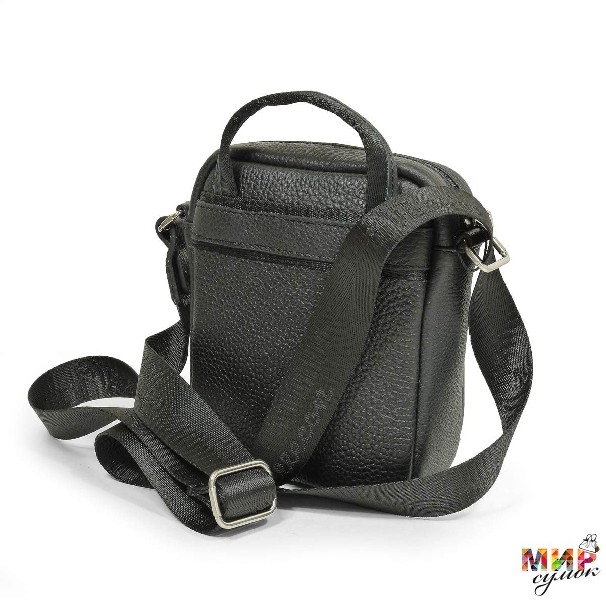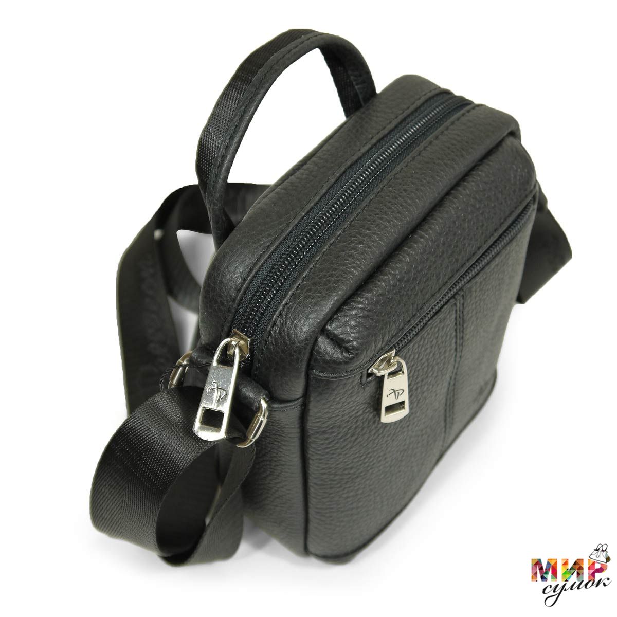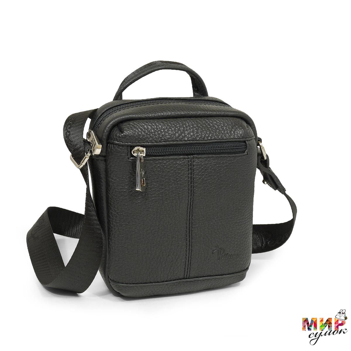 Натуральная кожа. Цвет: черный. Размер: (ШхВхГ) 15х18,5х4,5 см. С внешней стороны имеется карман на молнии. Внутри сумки: отделение на молнии под паспорт. Изделие снабжено плечевым ремнем.