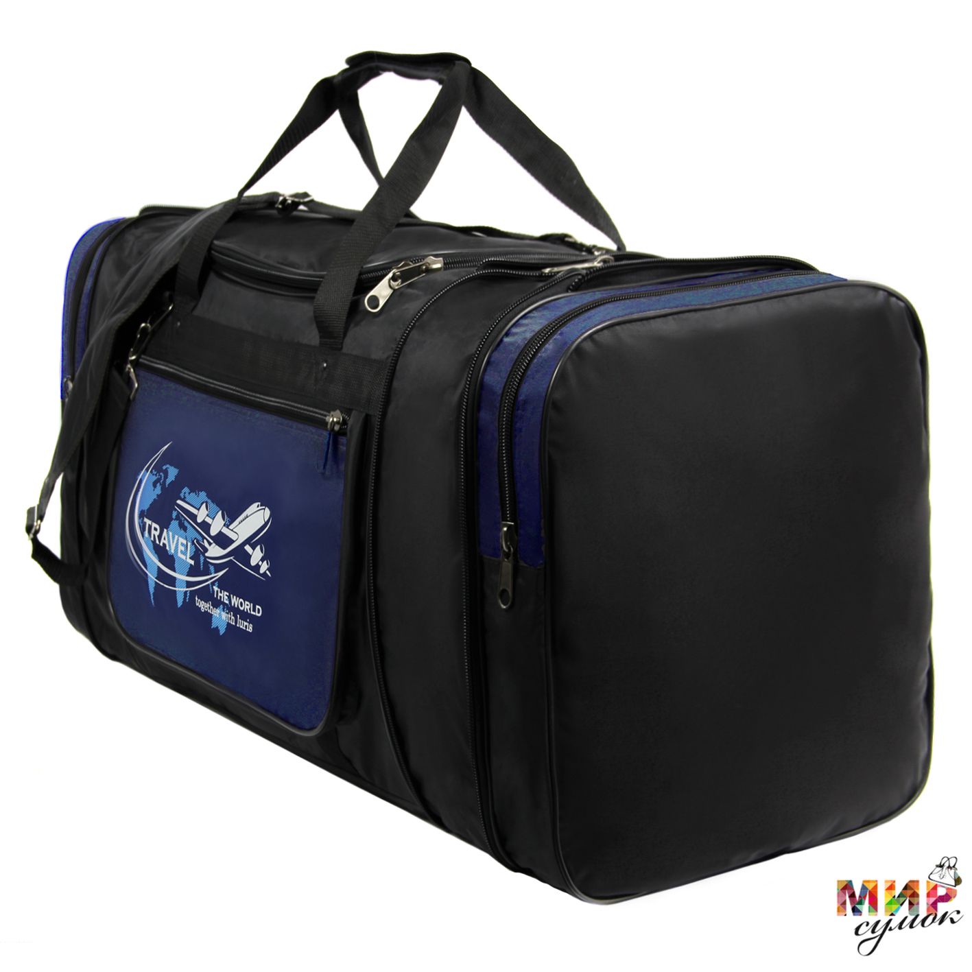 Дорожная сумка, для транспортировки личных вещей. Одно отделение, карман на передней стенке, два боковых отдела. Оснащена длинным регулируемым ремнем с большим наплечником. Имеется ручкодержатель. Увеличивается в длину за счет трансформации на 18 см. Дорогая фурнитура, швы окантованы, установлены хольнитены.