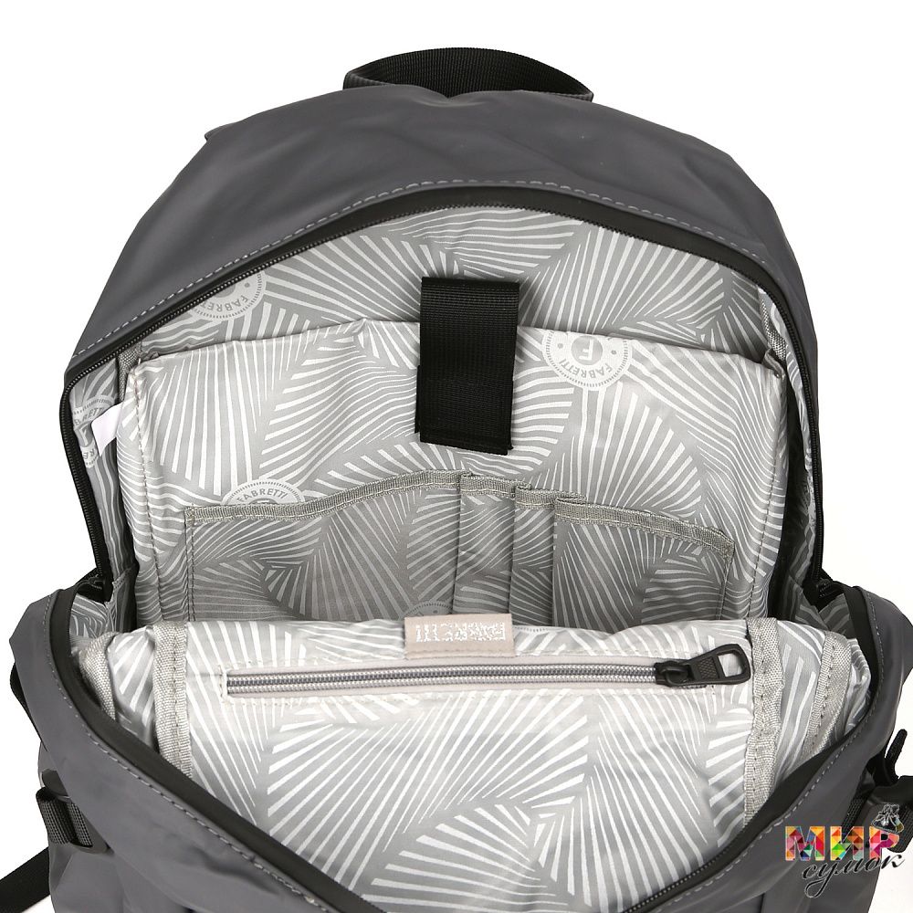 Стильный рюкзак FABRETTI в сером оттенке выполнен из влагостойкого нейлона. Он практичен и прост в уходе. Спинка и лямки оснащены мягкими вставками с системой циркуляции воздуха Air Flow, что обеспечивает комфорт и вентиляцию во время ношения. Просторное отделение закрывается на влагозащитную молнию с 2 бегунками. Внутри - отделение для гаджетов, закрывающееся на хлястик с липучкой; 2 боковых кармана: открытый и на молнии; органайзер для ручек и мелочей. На фронтальной части размещаются два вместительных кармана на молнии. Также имеются два открытых боковых кармана на резинке и с фиксирующими текстильными ремнями. Рюкзак прекрасно подойдёт для прогулок по городу, велосипедных поездок или путешествий.